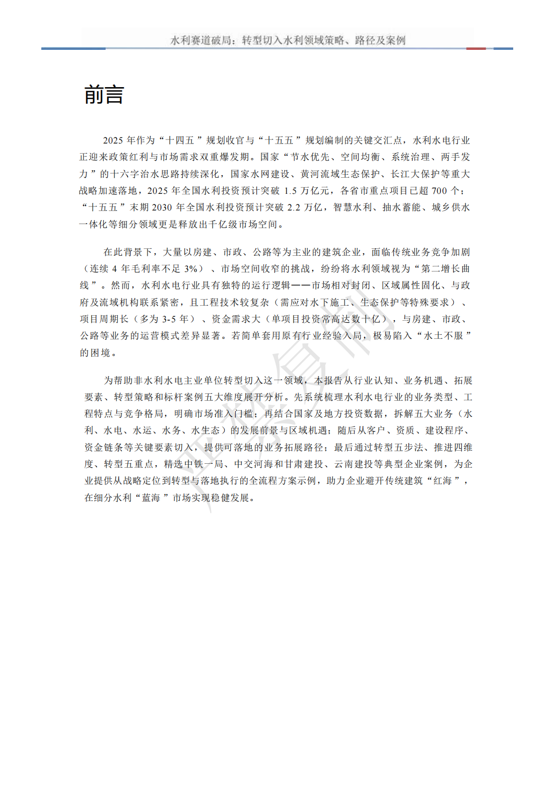 报告首次系统拆解水利领域独特运行逻辑,帮企业避开“经验陷阱”: